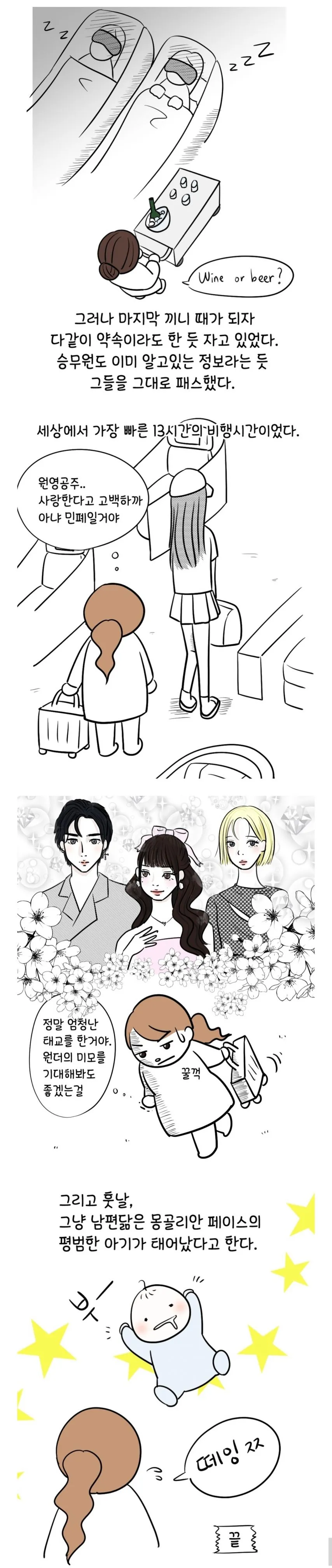 비행기에서 연예인들이 목격됐다는 소문이 돌아다닌다. 완전히 확인된 건 아니지만, 근처 좌석의 사람들이 서로 속삭이며 소문을 주고받는다. 여권과 탑승권 같은 디테일이 거론되면서 분위기만은 진짜처럼 들린다.