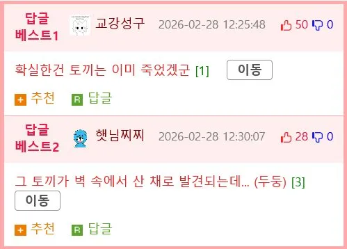 그 흔적들이 토끼 이야기를 떠올리게 한다면서도, 누가 말했다는 식으로 퍼져서 실제로 확인은 안 된 상태야.