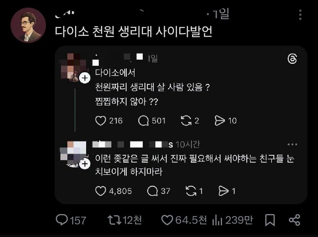 다이소 천원 생리대 이야기가 우리 커뮤니티에 다시 도달했어. 가격이 매력적이라고 생각하는 사람들과 품질 걱정이 먼저 떠오는 사람들 사이가 여전히 미묘하게 갈려 있더라. 사이다발언이라고들 들었는데, 진짜인지 가늠하기도 어렵고 분위기는 애매해.