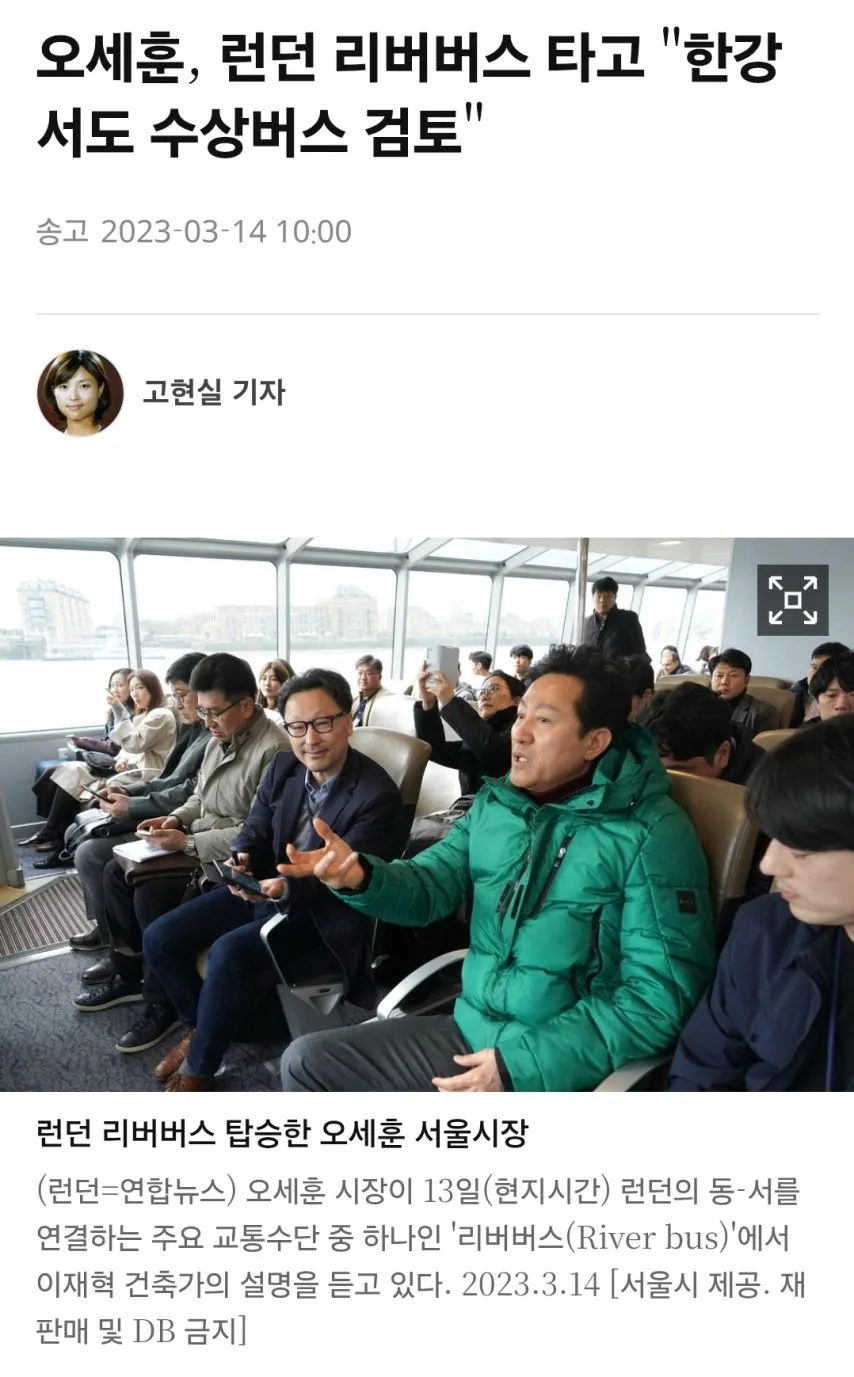 오세훈 시장이 런던의 리버버스에 관심이 있다는 소문이 요즘 툭툭 나오더라. 현장 사진과 기사 뉘앙스를 보면 과감한 아이디어를 머릿속에 담아오는 사람인 듯도 하고. 한강 같은 도시의 흐름에 비유되는 새로운 교통·공간 구상이 조금씩 떠오르는 걸까 궁금해진다. 아직 확정은 아니지만 외국 사례를 흘려 들여오는 분위기가 정책판에 남겨진 단서처럼 느껴진다.