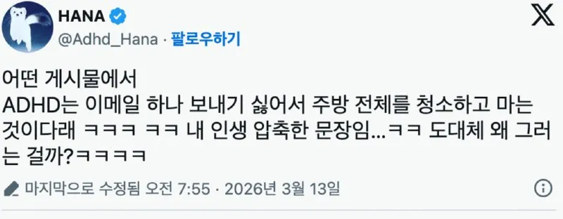 결론은 아직 모호하지만, ADHD와 관련된 이슈가 이렇게 일상 속 작은 행동에서 시작해 계속 입소문으로 번지는구나. HANA 같은 이름이 붙은 포스트가 남긴 여운은 우리 모두의 공감과 의심 사이를 오가게 만들고, 이때의 감정도 무시할 수 없더라. 아직 확실한 결론은 없지만, 이 이야기가 어떻게 흘러갈지 조금씩 지켜보는 수밖에 없는 걸까.