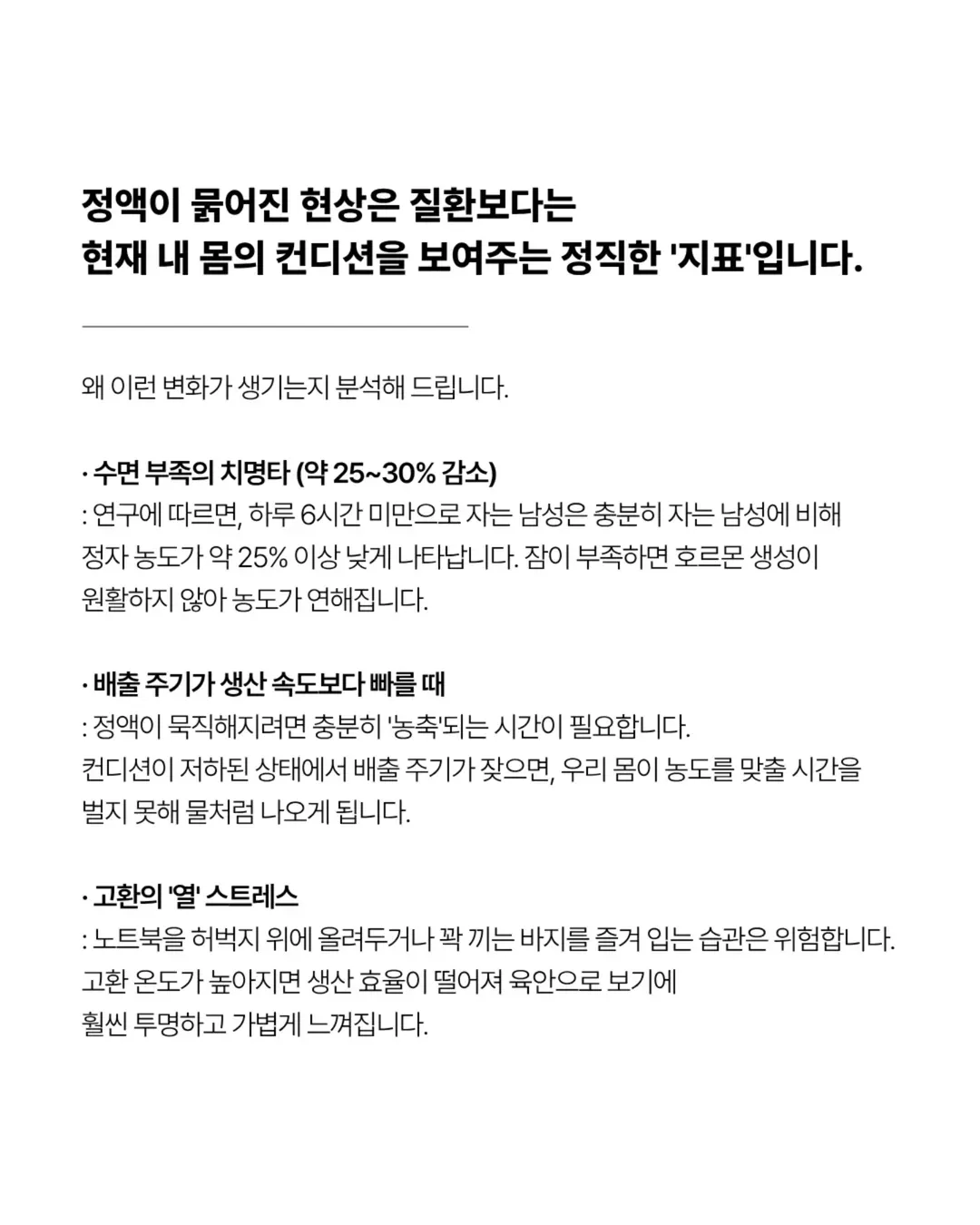 들리는 얘기 중에선 수면 부족이나 배출 주기가 너무 짧아지는 게 한몫한다는 말도 많아. 야근과 늦은 취침이 호르몬 밸런스를 흔들고, 그 결과 정자 농도가 얇아질 수 있다고들 하지. 또 고환 온도 문제가 은근히 작용한다는 소리도 있는데, 노트북이나 바지 선택 같은 습관이 의외로 영향 준다는 거야. 나도 며칠 전 바지를 더 편하게 입고 잠을 좀 더 자려 했는데, 확실하진 않아도 느낌은 달라 보이더라.