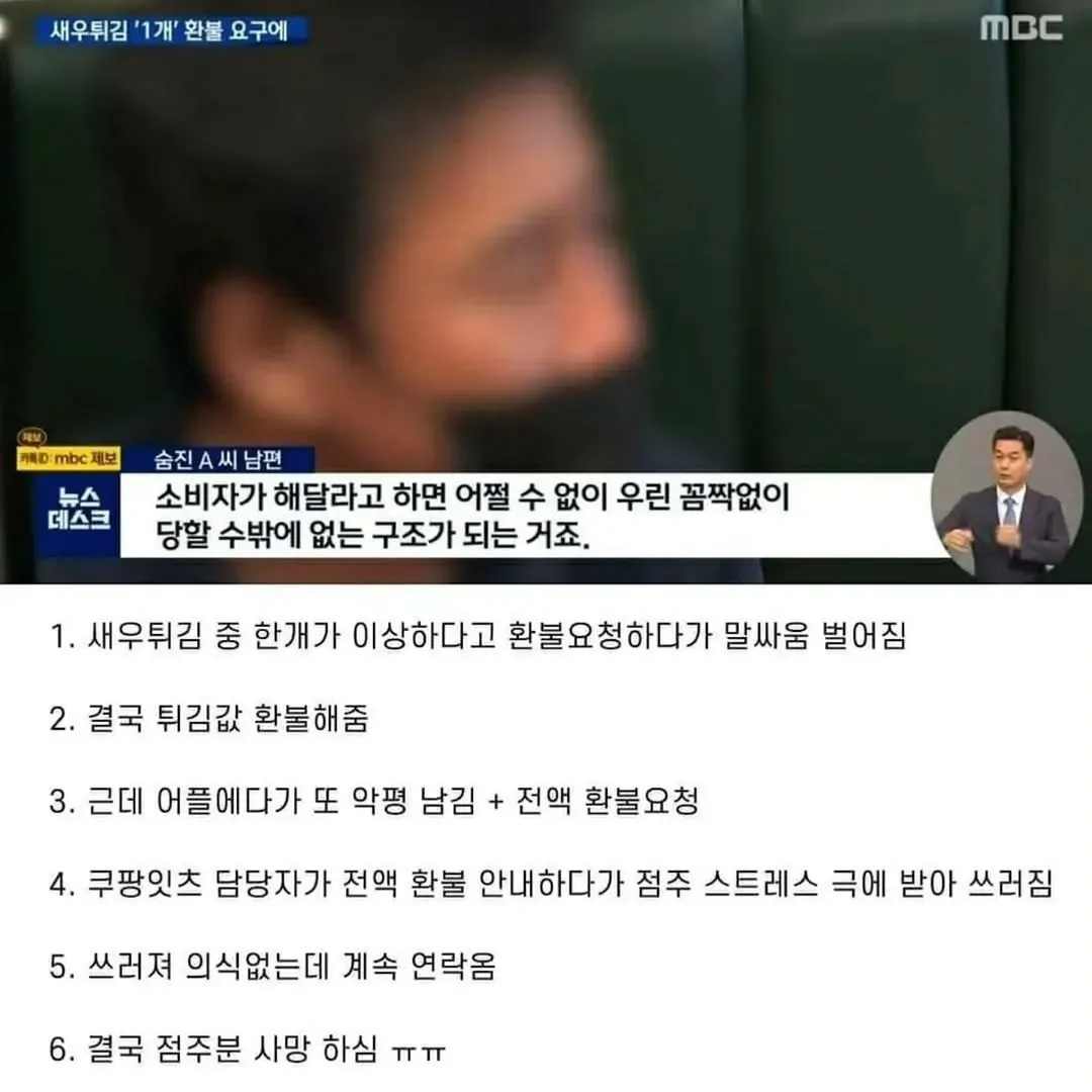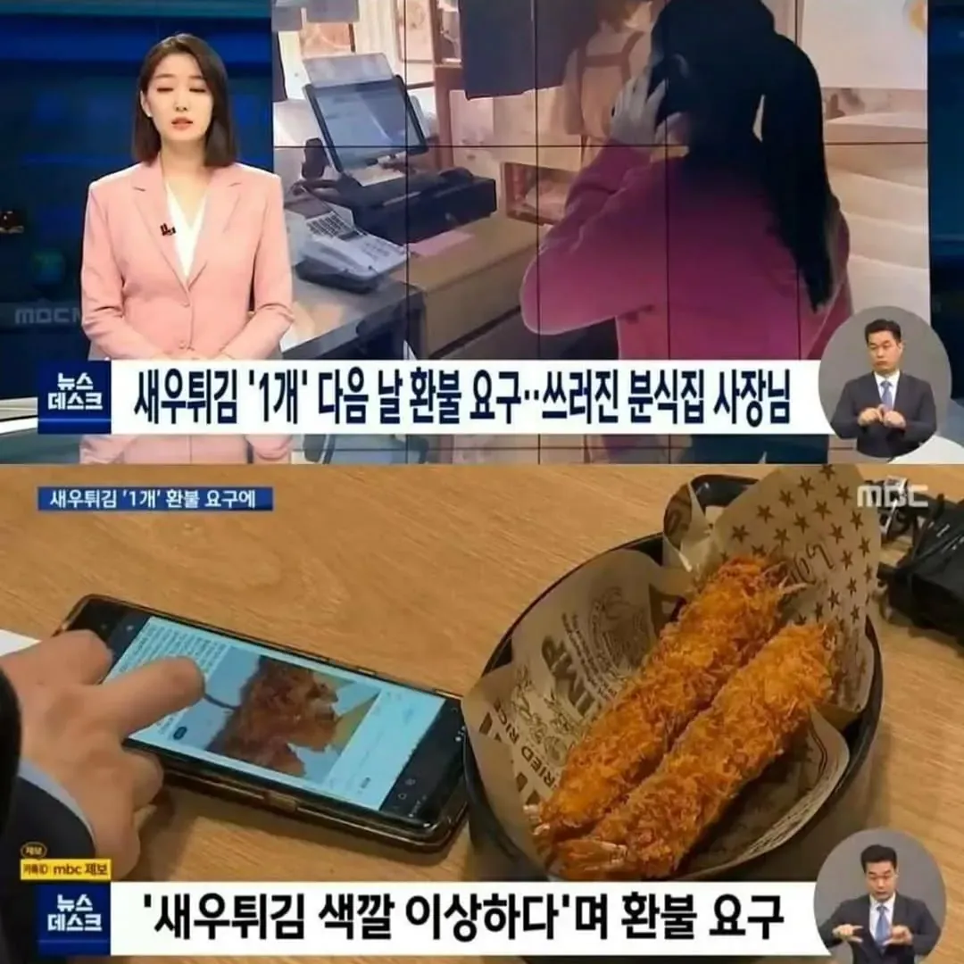 우리 동네 분식집에서 새우튀김 하나가 온갖 얘기를 불러일으키고 있어. 한 손님이 색이 이상하다고 환불을 달라고 해서 말다툼이 시작됐다는 소문이 돌고. 점주는 결국 환불을 해주었다고 들었지만 이게 다가 아니다 싶다. 다들 왜 이렇게까지 흘러가는지, 나도 모르게 관심이 커져가네.