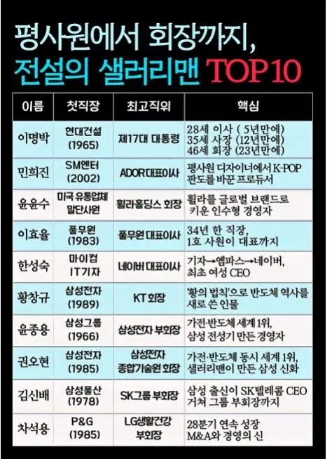 하나같이 다 대단한 사람들이군요 평사원으로 입사해서 회장까지 오르다니 말이죠