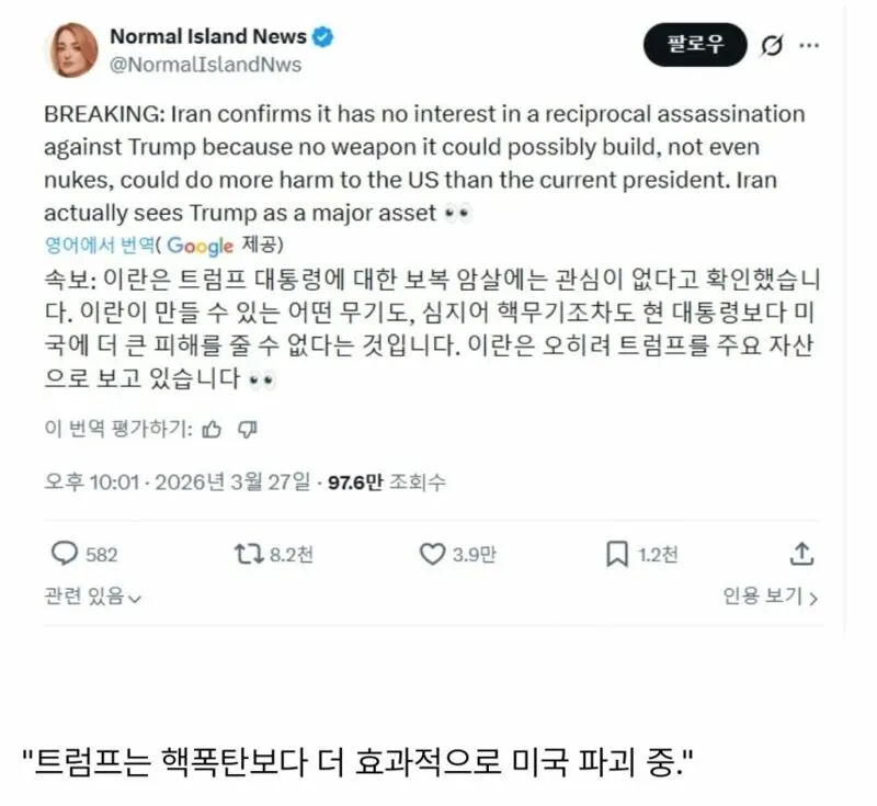 발언의 시점이나 기사 제목만으로도 서로의 계산이 보이려는 듯한 분위기가 있는데, 이란 쪽은 대담한 행보보단 계산된 외교 신호를 보내는 방식일 가능성이 있어. 중동 상황의 긴장은 늘 크게 작용하고, 미국 정책의 방향성도 이슈의 바탕을 이루지. 누가 먼저 누구를 자극하느냐보다 어느 쪽이 더 큰 이익을 얻는지에 초점이 맞춰진 느낌이야. 그러다 보니 소셜 피드엔 서로의 해석이 얽히고, 각종 추측이 붙어 돌아다니지.