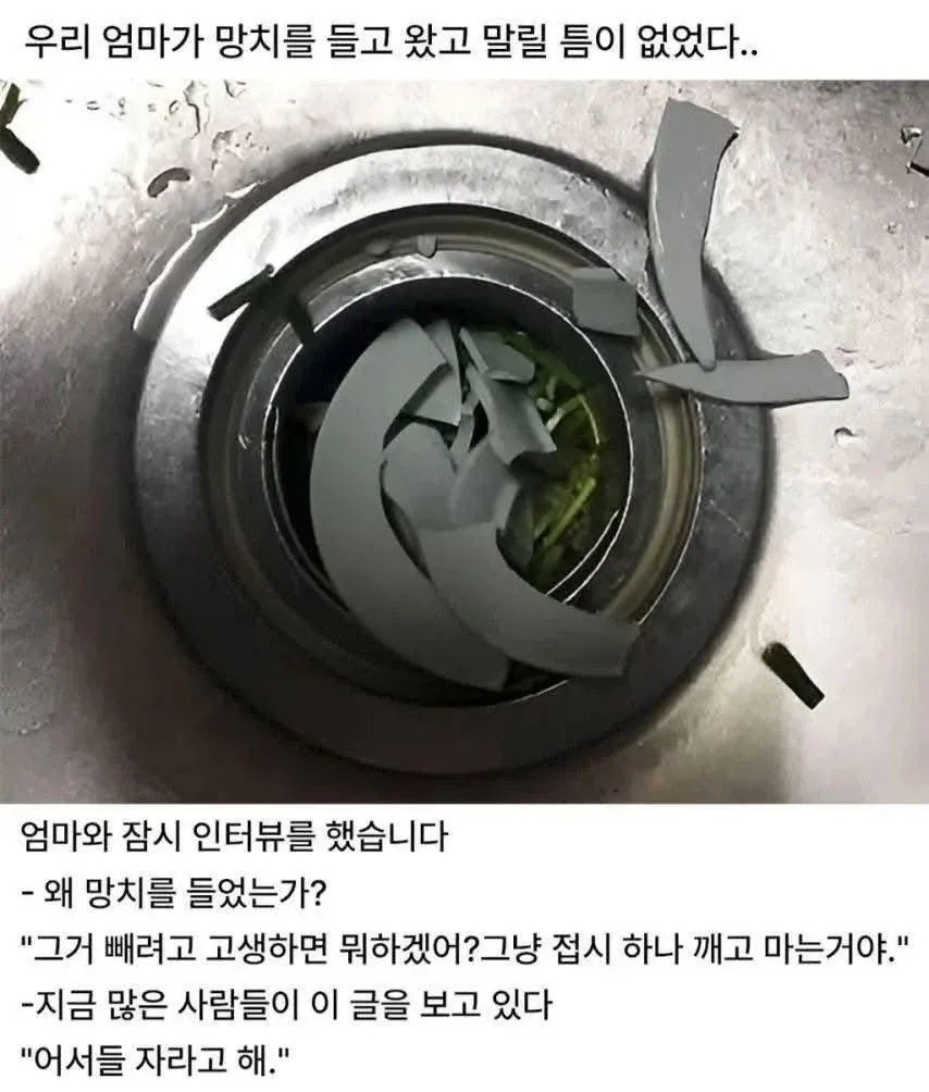 다들 주변의 흔적들에 단서라도 발견한 척 고개를 끄덕였지만, 진짜 원인은 또렷하게 드러나지 않아. 배수구 근처의 흔적이나, 새로 샀다는 물건의 자국 같은 것들이 말했지만 확실한 결론은 없지. 그래서 사람들은 각자의 해석을 카톡방에 올리고 서로의 추리를 비꼬지 않게 가볍게 주고받았어. 결국 이건 물리적인 문제일 가능성이 크다는 게 분위기의 다수 의견이더라.