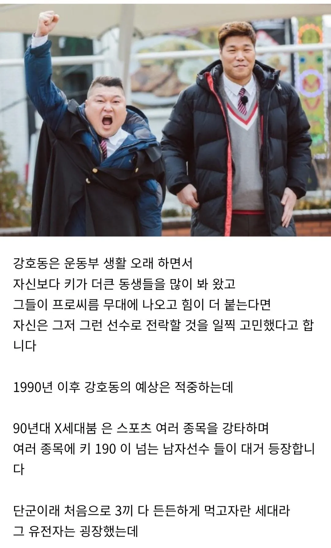 요즘 우리 말로도 그때의 X세대붐이 스포츠계 전반을 흔들었고, 키 190대인 선수들이 갑자기 많이 나오던 시점이기도 해. 현대 스포츠처럼 거인들이 쏟아져 나오자 팬들은 계속 이렇게 갈 거냐며 의문을 품었지. 강호동은 은퇴 뒤의 삶을 어땠을까 하는 추측도 많고, 어떤 선택이 자기에게 맞았다고 느꼈는지도 얘기가 다양해.