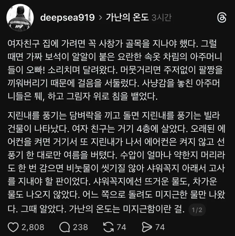 수압이 불안정하고 월세가 더 오른다는 소문이 우리 동네를 휩쓸고 있어. 누가 먼저 말하길 물이 미지근하고 샤워를 할 때 체감 온도가 오르내린다네. 난 그 말들을 들으며 가난의 온도가 다시 떠올랐다고 느꼈지. 사람들이 왜 이렇게 불안한 징후를 서로 감추려 할까, 이웃들의 얘기가 조심스레 흘러나오는 분위기야.