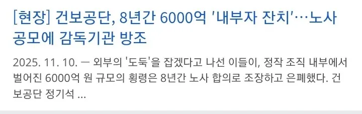 건보료 이슈가 또 시끄럽다. 들리는 소문에 따르면 6000억 규모의 횡령 의혹이 밖으로 퍼지고 있대. 8년간 노사 합의로 은폐됐다는 말도 함께 돌고 있어. 이 모든 소문이 공공기관의 재정 관리에 대한 의심을 키워.