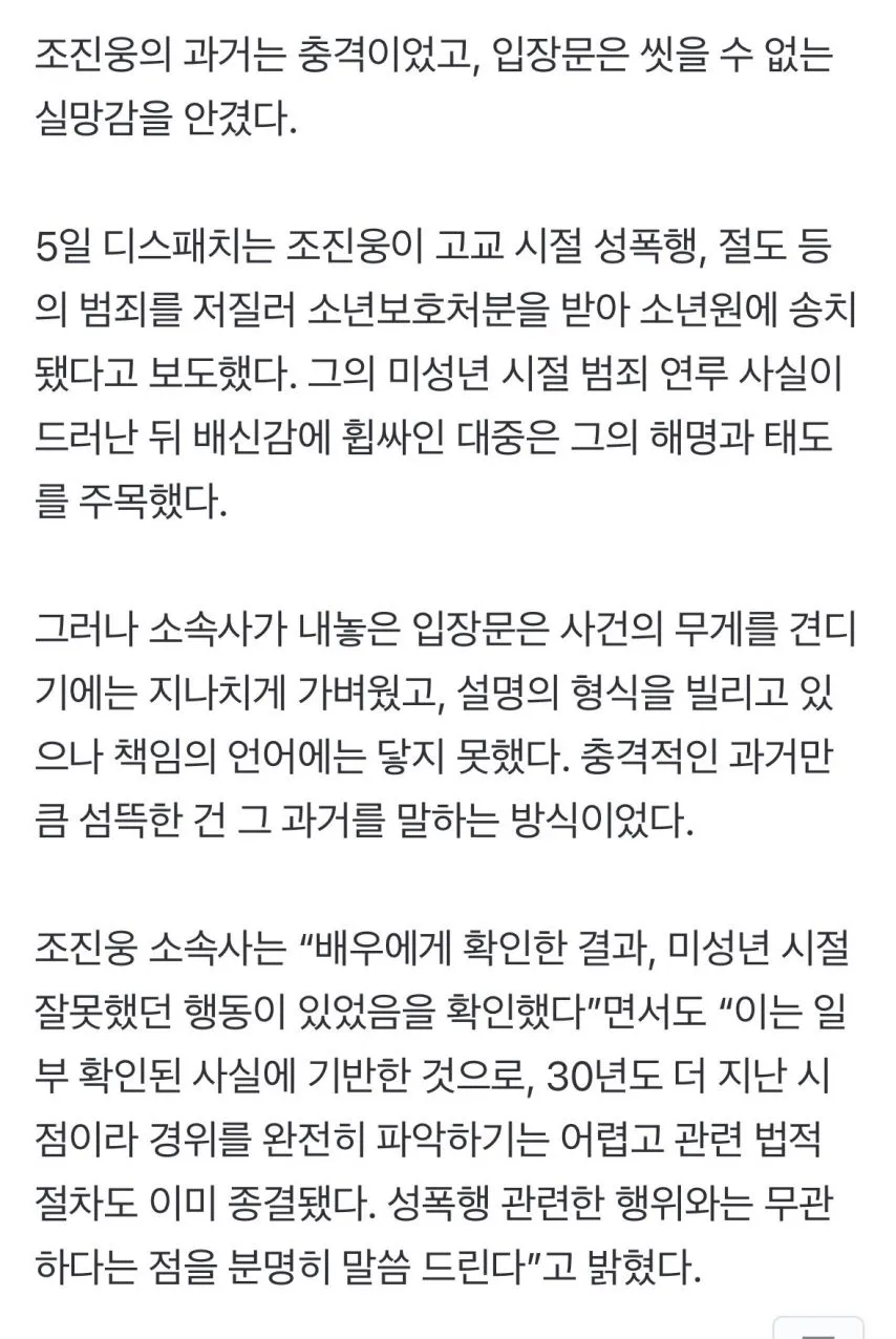 요즘 우리 커뮤니티에서 조진웅 얘기가 다시 수면 위로 떠올랐어. 새로 나온 입장문이 뭔가 애매하게 느껴져서 다들 말들이 오가더라. 과거의 그림자와 현재의 이미지 사이에서 사람들의 마음이 조금 흔들리는 느낌이야. 누구도 확정적으로 말하기 어렵다 보니 서로 추측과 의혹이 얽혀 버린 분위기야.