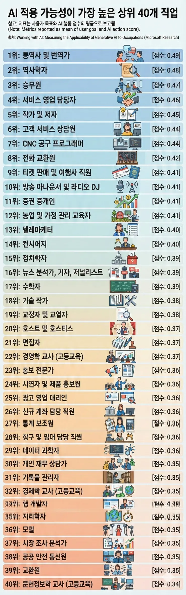 AI로 대체 가능성이 '높은' 직업 순위 (인포그래픽) [마이크로소프트]
