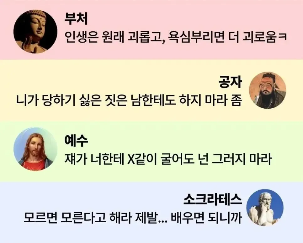 4대 성인이 그 긴 내용을 직설적으로 요약해줬어도
