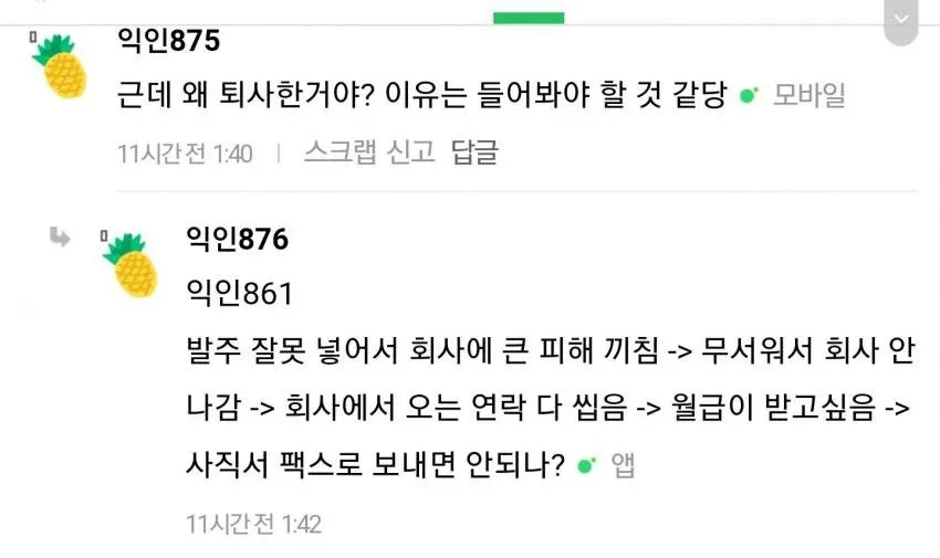 발주 문제였다는 얘기도 들리고, 누가 봐도 매끄럽지 못한 흐름이 계속 따라다니네. 퇴사자는 왜 연락을 피하는지, 우리 입장에서 추측은 많지만 확실한 건 없지. 급여지급이 늦어지면서 회사도 난처하고, 이 기간에 남아있는 동료들까지 마음이 어수선한 듯해. 이런 식으로 은근히 불똥이 번지면 서로 간의 신뢰도 금이 가는 거 아니냐는 얘기도 나오더라.