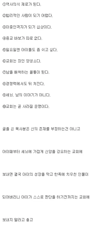 나도 참 공감하는게 교회를 다니는건 아니지만 어느 추운 겨울날에 주말에 길을 가는데 진짜 어린애들 많이 쳐줘도 초등학교 저학년밖에 안돼보이는 애들이 길에서 휴지같은거 나눠주면서 교회오세요 예수 믿으세요 이러고 있더라