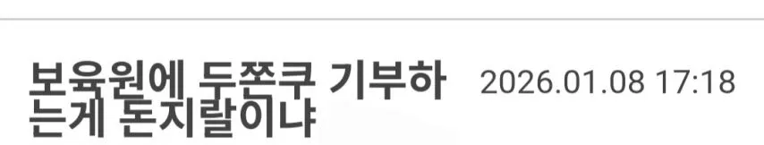 그래서 이 일은 결국 기부 방식의 문제를 넘어서 우리 커뮤니티의 나눔 문화에 대한 반성을 남기지. 간식 기부든 돈 기부든 마음은 밝았을 텐데, 어느 쪽이 더 큰 도움인지에 대한 판단은 아직 애매하게 남아 있어. 보육원 이야기가 떠올라서 그런지 앞으로의 간식 기부와 돈 기부 사이의 균형도 천천히 생각하게 되네. 이런 흐름 속에서 우리도 어떤 식으로든 서로의 의도와 가치를 존중하자는 마음으로 남겨두고 싶다.