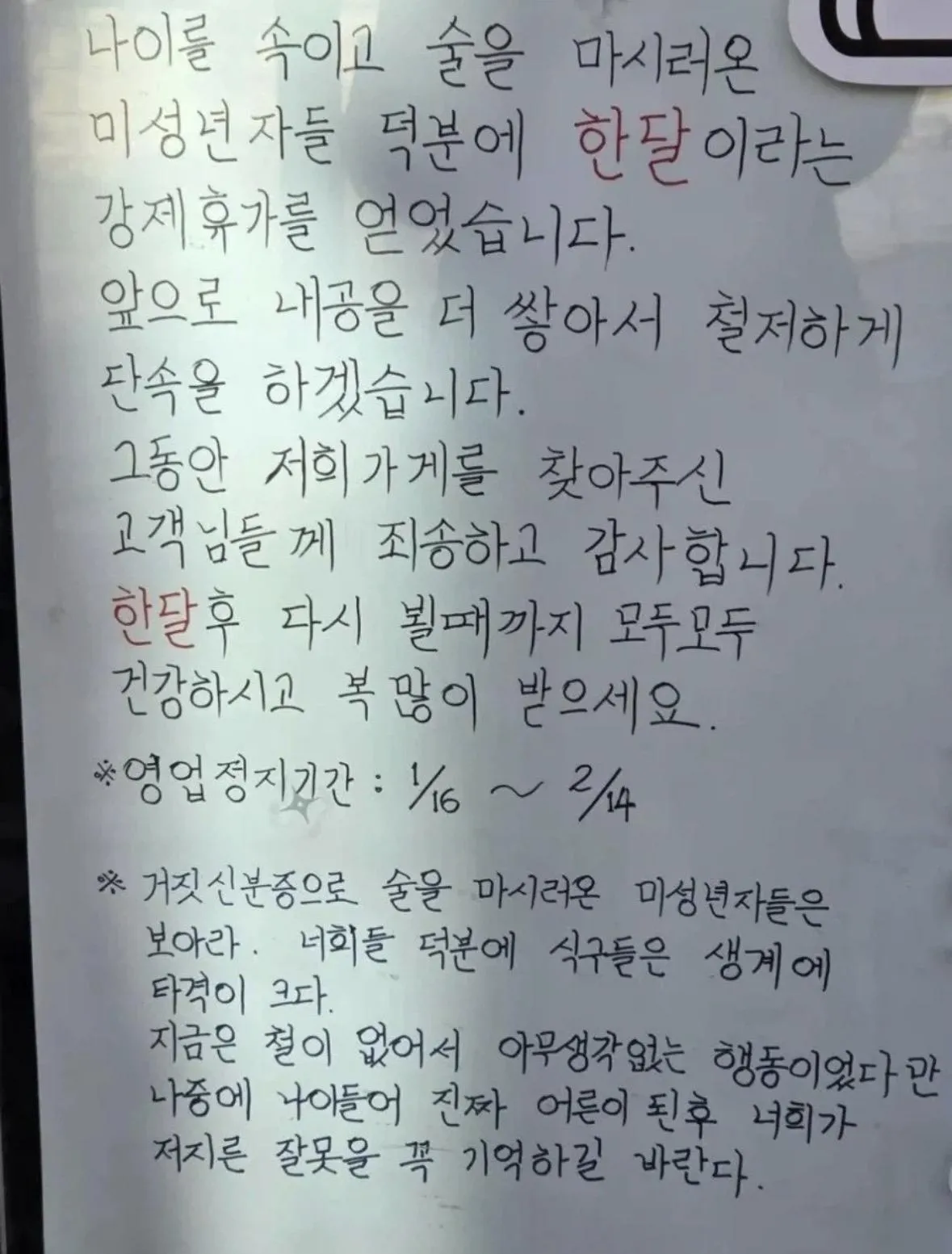 사람들마다 이야기가 달라. 어떤 사람은 직원들이 대응을 좀 더 깔끔하게 할 걸로 보였다고도 하고, 또 다른 쪽은 매출 타격까지 이야기하더라. 단속이 강화됐다는 건 누구나 인정하는 분위긴데, 실제로 그런 조치가 어떻게 이뤄졌는지는 모르는 게 많아. 가게 측은 앞으로 더 엄격한 나이 확인 절차를 약속했다는 말도 흘러다니지.
