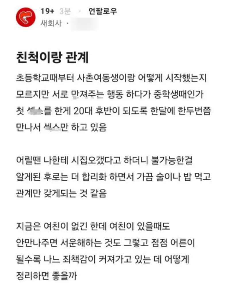 사촌 뿐만 아니라 친남매 간에도 저렇게 하는 것들이 있다는 거.....