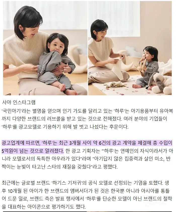 광고계의 관계자들은 하루의 집중력과 눈빛이 매력이라고 말하지만, 이런 급속한 노출이 아이에게 어떤 영향을 주는지 걱정되는 목소리도 있다.