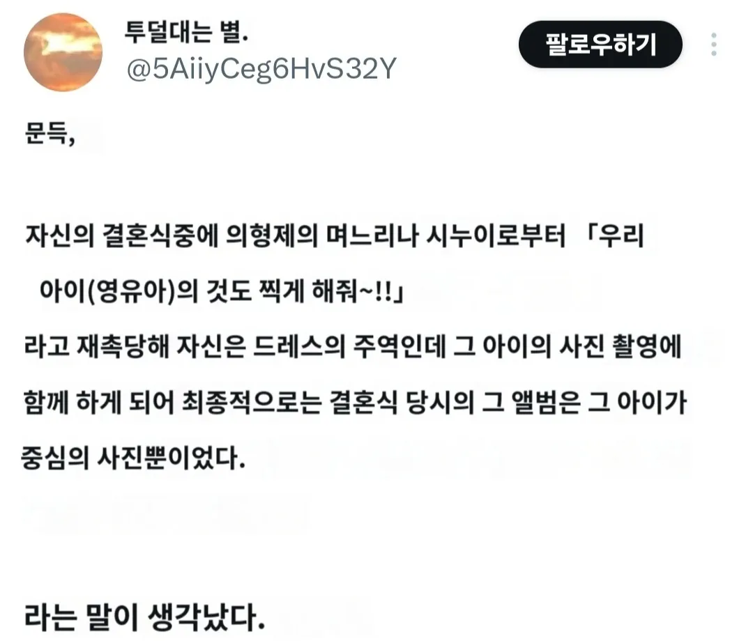 결혼식의 핵심은 서로의 축복인데, 아이의 드레스가 주인공처럼 비춰지는지 여부는 여전히 헷갈려. 각자 TPO에 맞춰 움직여야 한다는 생각도 강하게 남아 있고, 그래서 쉽게 결론내리기 힘들더라. 다다음에 비슷한 상황이 또 나오더라도 사람들은 서로 다른 관점으로 이야기를 이어나갈 거 같아. 그래도 오늘 이 이야기가 아이의 편안함과 가족의 분위기를 함께 바라보게 만드는 계기가 되길 바래—주인공병 같은 말은 던지지 말자고 서로 다짐하는 분위기가 남아 있길.