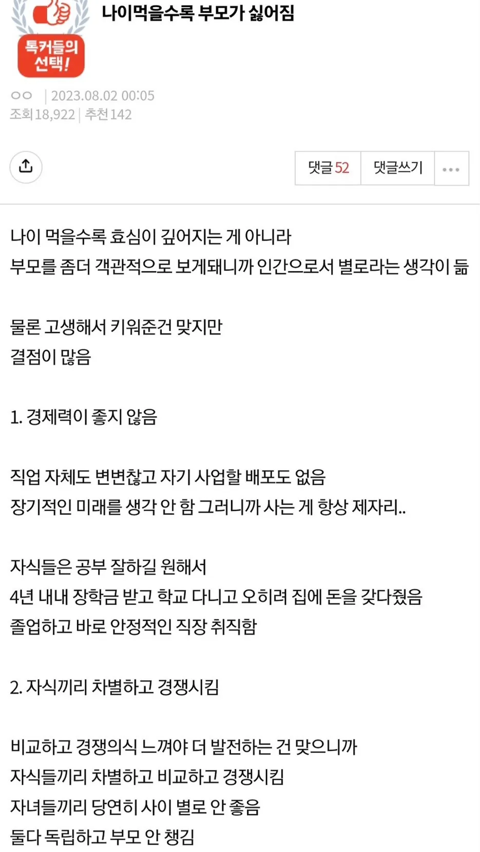 주변 얘기를 잠깐 들으면 형제끼리 비교하고 경쟁하는 분위기가 남아 있어 가족 안에서도 말이 조심스러워.