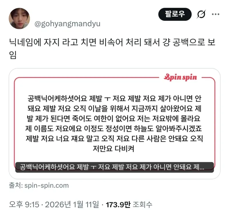 공백 닉네임을 쓰는 계정들이 비속어 필터를 피해가는 듯한 분위기가 다시 떠올랐다.